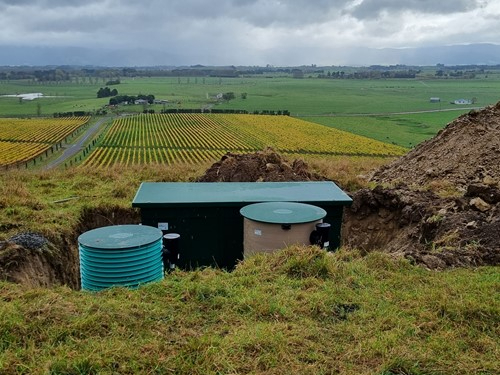 This AX40 AdvanTex nitrogen-reducing system serves a large residential property perched on a Queenstown cliff, ensuring effluent quality meets environmental standards. Once landscaping is complete, only the access lids will be visible, demonstrating how sustainable wastewater solutions blend seamlessly into sensitive environments.